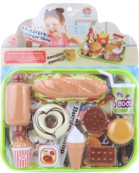 Del seta so hot dog, donut, piškoti, sladoled, napitek in drugi dodatki za realistično igro kuhanja. Komplet je odlična ideja za darilo in čudovito dopolni otroško kuhinjo ali trgovino.