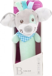 Ljubka plišasta ropotuljica v obliki zelenega kužka razveseli vsakega dojenčka od 0+. Lahka zasnova, prijeten mehak material in piskajoči učinek podpirajo razvoj čutov, motorike ter pritegnejo malčka pri igri in umirjanju.