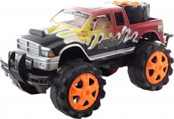 To terensko vozilo na vztrajnik združuje privlačen videz s preprostim upravljanjem: potegnite, spustite in opazujte, kako vozilo živahno steče naprej. Zahvaljujoč večjim kolesom in višjemu podvozju je pripravljeno na preproge, gladka tla in manjše ovire.
