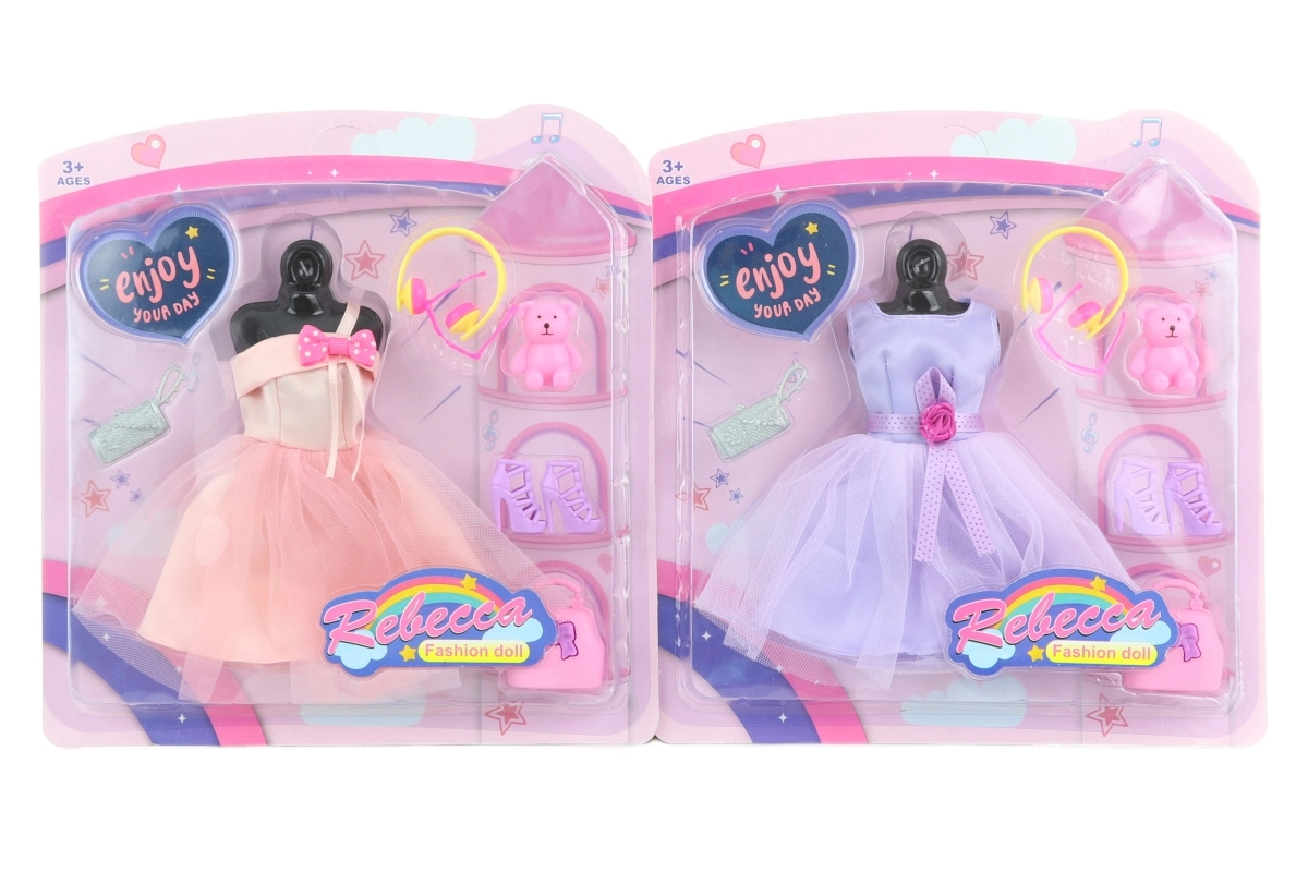 Prisrčen komplet za male ljubiteljice punčk vsebuje oblekico za punčko in modne dodatke za ustvarjalno igro. V kompletu najdete čevljičke, 2 torbici, plišastega medvedka in slušalke. Oblekica meri približno 14,5 × 12 cm in je idealna za običajne punčke. Odlično darilo za otroke od 3 let dalje.