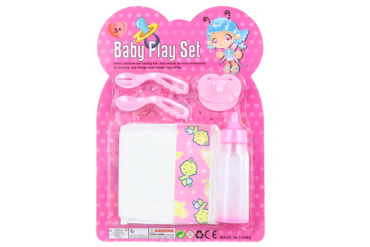 Vsebina paketa vključuje vse za celovito skrb: stekleničko za pitje za napajanje punčke, pleničko za previjanje, dudo za pomiritev in pribor za hranjenje. Zaradi kompaktnih mer je komplet primeren tudi za na pot in ga je enostavno pospraviti.