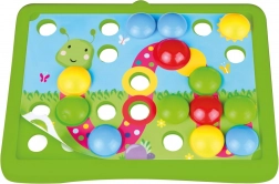 Zabavna mozaika z motivi narave za najmlajše otroke podpira fino motoriko, učenje barv in koordinacijske spretnosti. Zaradi velikih žebljičkov in lahko zadetih odprtin se je otroci od 2 let hitro navadijo. V kompletu je 7 barvnih predlog in 36 žebljičkov iz trpežne plastike.