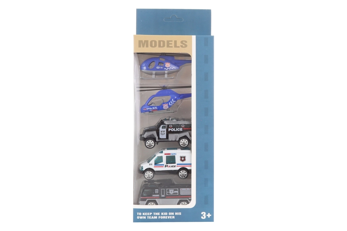 Odkrijte akcijsko zabavo s setom policijskih kovinskih avtomobilov, ki vključuje 2 helikopterja in 3 avtomobile. Idealno za male ljubitelje reševalnih služb od 3 let dalje. Kompaktna embalaža z merami 10 × 27 × 3,5 cm je odlična za na pot ali kot darilo.