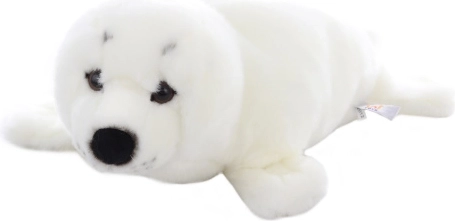 Plišasti tjulenj velikosti približno 44 × 14 × 27 cm. Starost 0+