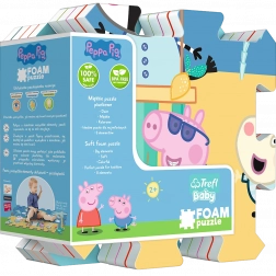 Uživajte v zabavi in varnem igranju z mehkimi penastimi sestavljankami z motivom PUJSE PEPPE in njenih prijateljev. Podloga iz kakovostnega materiala s debeline 1,5 cm je pralna, zdravju neškodljiva in odlična za otroke od 2 let dalje. Iz osmih delov lahko ustvarite površino približno 117 × 60 cm ali iz njih zgradite kocko, tunel ali izvirno stensko dekoracijo.