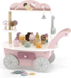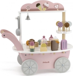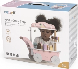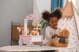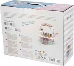Prisrčna lesena stojnica 3v1 znamke VIGA – linija POLARB – deluje kot sladkarna, sladolednica in mali trgovinica. Otroci bodo uživali v igri vlog prodajalca, pripravi dobrot in strežbi strank. Priloženi so bogati dodatki (lizike, sladoledi, korneti, prelivi), praktična odpirajoča se polička ter varna izdelava iz kakovostnega lesa z netoksičnimi barvami v nežnih pastelnih barvah.