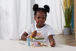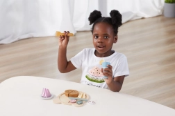 Igra kuhanja in strežbe razvija domišljijo, koordinacijo in socialne veščine pri skupni igri s prijatelji ali starši.