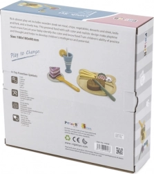 Lesena kosilna set POLARB od VIGA je pripravljena za postrežbo dobrot v slogu. Na krožniček si lahko otroci razporedijo steak, pomfrit, zelenjavo in sladico ter vse »popijejo« s pijačo s slamico. Realistični dodatki spodbujajo posnemanje odraslih ter razvijajo samostojnost in besedni zaklad.