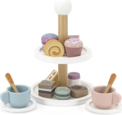 Elegantno dvonadstropno stojalo sprejme vse tortice in ustvari realistično sceno za čajni popoldan. Otroci se igrivo urijo v finej motoriki pri aranžiranju.