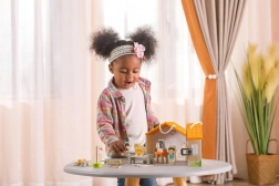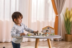 Igrača je pravljično izdelana iz bukovega lesa in pobarvana z nestrupenimi barvami. Kovinska ključavnica preprečuje izgubo figuric, kar zagotavlja varnost in urejenost pri igri.
