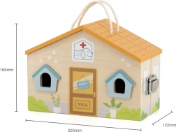 Odkrijte veselje do igre z leseno veterinarsko kliniko VIGA, ki otrokom omogoča, da postanejo mali veterinarji. Ta prenosna igrača je opremljena z udobnim ročajem, zaradi česar jo je mogoče enostavno prenašati.