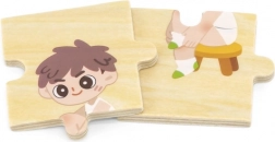 Ta kakovostna lesena izobraževalna igrača otroke uči pravilnega zaporedja oblačenja z zlaganjem zaporednih delov s podobami dečka in deklice. Vsak del ima edinstven motiv in natančno sodi skupaj, zato otroci med igro urijo razumevanje povezav in potrpežljivost.