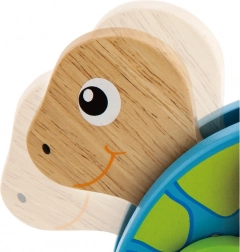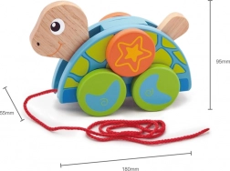 Ta pisana lesena vlečna želva je zasnovana tako, da otroke motivira k hoji, podpira koordinacijo gibov ter naravno razvija fino in grobo motoriko. Robustna lesena izdelava in prijetno zaobljeni robovi zagotavljajo varno igro, medtem ko izrazite barve in igriv dizajn spodbujajo vizualno zaznavanje.