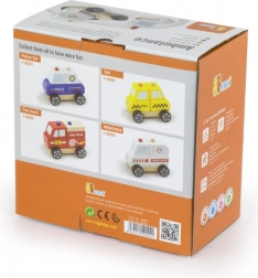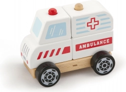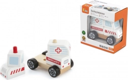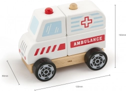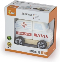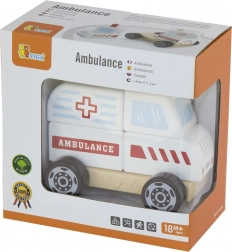 Odkrijte kakovostno leseno reševalno vozilo, ki združuje sestavljive kocke in pomična kolesca za zabavno igro ter razvoj motorike. Varna izvedba z gladkimi robovi, idealna za otroke od 18 mesecev. Kompaktne mere, trpežni materiali in privlačen dizajn s potiskom AMBULANCE zagotavljajo ure ustvarjalne zabave.