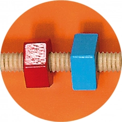 Labirint s kroglico in vijaki z navojem urijo natančnost prstov, prijem in koordinacijo oko–roka. Otroci premikajo kroglico ter vadijo potrpežljivost in zbranost.