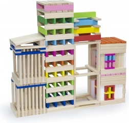 Lesene gradbene kocke spodbujajo otroke k razvijanju njihove ustvarjalnosti in domišljije.