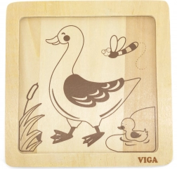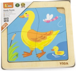 Lesene puzzle Viga vsebujejo štiri tematske koščke, ki jih je enostavno namestiti na podlago s sliko. Vsak košček je izdelan iz kakovostnega lesa in pobarvan z varnimi, nestrupenimi barvami, ki zagotavljajo varnost otrok in okolja.