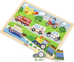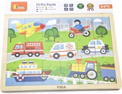 Odkrijte zabavne lesene puzzle z motivom prevoza, ki otroke pritegnejo s pisanimi barvami in jih učijo prepoznavati vozila. Sestavljanka s 24 kosi razvija fino motoriko, logiko in potrpežljivost. Idealno za otroke od 24 mesecev naprej, izdelano iz kakovostnega lesa za varno in vzdržljivo igro.