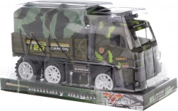 Realistično vojaško vozilo s ponjavo dolžine približno 23 cm bo navdušilo male ljubitelje tehnike. Ponjava je pritrjena z elastikami in jo je mogoče preprosto odstraniti. Vozilo se premika na vztrajnik za zabavno vožnjo brez baterij. Idealna igrača za otroke od 3 let.