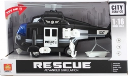 Del kompleta je vitel s kavljem za reševalne operacije in preprosto dvigovanje tovora. Baterije 3× AG13 so že priložene, zato se igra lahko začne takoj. Odlično darilo za otroke od 3 let, ki obožujejo policijske akcije in helikopterje.