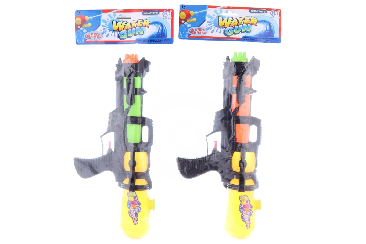 Ta vodna pištola prinaša osvežujočo mero zabave za male in velike. Kompaktna dolžina 37 cm in vgrajen rezervoar omogočata enostavno polnjenje in udobno škropljenje vode. Trpežna plastična izvedba se dobro prilega tudi manjšim otroškim rokam.
