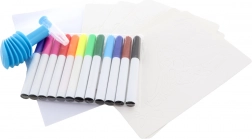 - Bogata oprema – 12 flomastrov, 8 šablon, 6 papirjev in praktičen podstavek.