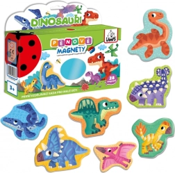V pakiranju najdete 28 podrobno izdelanih magnetov s priljubljenimi dinozavri. Zaradi 4 mm debeline jih otroci zlahka primejo, zlagajo in prestavljajo. Peneast material je lahek in prijeten na dotik, primeren za vsakodnevno igro doma in v vrtcu.