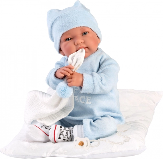 Llorens oblačila za punčko New Born 43–44 cm, 3-delni komplet z vzglavnikom in ninico