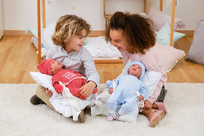 Prisrčen komplet oblačil za punčko NEW BORN blagovne znamke Llorens v velikosti 43–44 cm bo razveselil vsako malo skrbnico. Vsebuje 3-delni komplet oblačil, mehak vzglavnik/podlogo in ninico z cofkom. Kakovostna španska izdelava, prijetni materiali in varna zasnova za otroke od 3 let.
