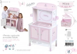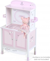 Zaradi natančnega španskega dizajna in skrbno izbranih materialov omara deluje lahkotno in čisto. Praktične mere zagotavljajo stabilnost in dovolj prostora za vse potrebščine za nego punčke do dolžine 45 cm.