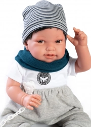 Realistična dojenčkova punčka Antonio Juan Pipo Hair navduši z nežnim izrazom, podrobno izdelanimi potezami in možnostjo naravnega postavljanja zahvaljujoč sklepom na rokah in nogah. Kombinacija mehkega tekstilnega telesca ter mehčanega vinila na glavi in okončinah zagotavlja zelo prijeten dotik in avtentičen videz.