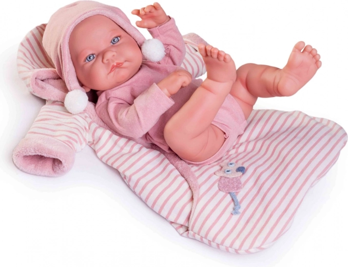 Ta ročno izdelana španska punčka predstavlja novorojenčka z izjemno verodostojno upodobitvijo dojenčkovih gubic in anatomskih detajlov. Celotno telo je iz mehčanega vinila, ki je nežen na dotik in vzdržljiv pri vsakodnevni igri. Dojenčka je mogoče tudi kopati – vendar pazite, da se trepalnice ne zmočijo.
