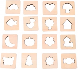 Tipalna igra Prepoznaj oblike v okvirčku je izdelana iz kakovostnega naravnega lesa. Vsebuje 16 okvirčkov dimenzij 5,9 x 5,9 cm in 16 barvnih izrezljanih oblik, ki spodbujajo tip in senzorične zaznave otrok. S preprostim zlaganjem in iskanjem oblik v vrečki se otroci učijo na zabaven način. Igro je mogoče igrati na različne načine, vključno z iskanjem oblik zgolj po dotiku, kar ji daje poseben čar.