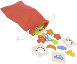 Igra pomaga razvijati fine motorične spretnosti otrok s tipalnim prepoznavanjem oblik.