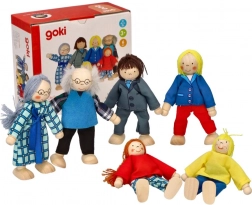 Komplet je združljiv z vsemi hišicami za lutke blagovne znamke GOKI. Naravni materiali, skrbna izbira lesa in varne barve poudarjajo dolgo življenjsko dobo in vrednote trajnosti. Višina lutk 9–11 cm dobro sede v roko mlajšim otrokom in omogoča enostavno rokovanje.