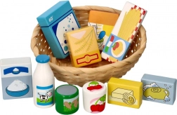 Ta ljubek set za otroško trgovino vsebuje izbor lesenih živil v naravni pleteni košari. Zahvaljujoč realističnemu videzu in živim barvam si otroci urijo besedni zaklad, fino motoriko ter socialne veščine pri igri prodajalca in kupca.