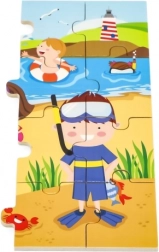 VIGA lesene puzzle poletje – 24 kosov so idealna prva sestavljanka za otroke od 2 let naprej. Čvrsti leseni koščki in okvir pomagajo ohranjati motiv na mestu, zato se lahko otroci osredotočijo na sestavljanje in veselje ob rezultatu. Vesela poletna ilustracija s plaže naravno razvija besedni zaklad in domišljijo.