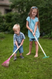 Te otroške pahljačaste grablje WOODY otrokom pomagajo vključiti se v delo na vrtu in posnemati odrasle pri pravem grabljenju listja ali drobnih nečistoč. Zaradi kombinacije kovinske glave in lesenega ročaja ponujajo vzdržljivost in prijeten oprijem.