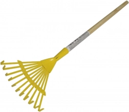 Praktične pahljačaste grablje WOODY za male vrtnarje imajo kovinsko glavo, lesen ročaj in dolžino pribl. 80 cm. Odlične za grabljanje listja in drobnih smeti, primerne za otroke od 3 let. Barvna izvedba je ilustrativna – dobavljamo glede na zaloge.