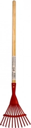 Vzdržljiv kovinski del za učinkovito grabljenje in prijeten lesen ročaj za udoben oprijem tudi pri daljšem delu.