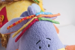 Vsaka podrobnost oslička Laki je zasnovana tako, da spodbuja otrokova čutila z različnimi teksturami in barvnimi kontrasti.