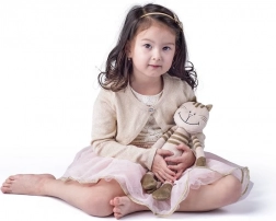 Ta mehka plišasta mucka v prijetni bežni barvi z rjavimi črtami bo otroke razveselila s svojim prijaznim izrazom in dolgimi okončinami, ki so kot ustvarjene za objemanje. Zaradi lahke zasnove jo zlahka držijo tudi najmanjše ročice, zato bo priljubljena spremljevalka pri uspavanju in igri.