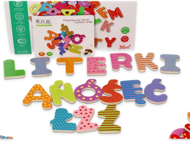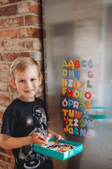 Odkrijte svet črk s tem kompletom magnetnih črk, ki vključuje tudi poljske znake. Idealni pripomoček za učenje in igro.