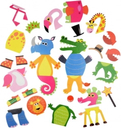 - 31 barvnih nalepk – živali, deli teles in zabavni dodatki