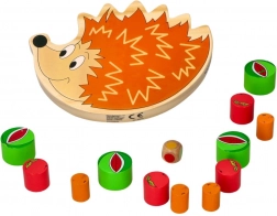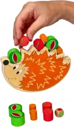 Pomoč otrokom pri razvoju fine motorike in koordinacije roke in oči med uravnoteženjem raznobarvnih delov na igralnega ježka.