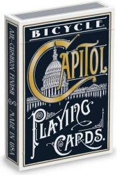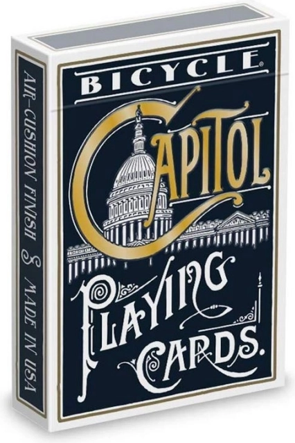 Edicija Capitol zvesto sledi izvirnemu dizajnu, prvič natisnjenemu leta 1886, in slavi ikonično zgradbo Kapitola v Washingtonu. Zahvaljujoč površinski obdelavi Air‑Cushion Finish in premium kartonu Bicycle se karte gladko mešajo, so trpežne in prijetne na dotik.