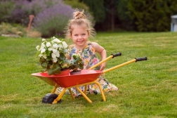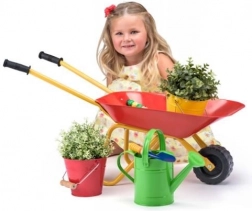 Z samokolnico lahko otroci enostavno prevažajo rastline, zemljo ali majhna vrtna orodja. Podpira sposobnost sodelovanja in odgovornost pri negi vrta.
