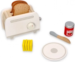Ta kakovosten leseni toaster (otroški toaster) je odličen dodatek vsaki otroški kuhinjici. Otroci lahko nastavijo »stopnjo zapečenosti« z vrtljivim gumbom, pritisnejo ročico in postrežejo zajtrk s kruhom, maslom in jagodno marmelado. Igra spodbuja domišljijo, osredotočenost in skupno igranje.