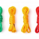 V kompletu so barvite vrvice za enostavno prepletanje in ustvarjanje zapestnic, verižic in vzorcev.