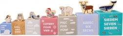Vsaka kocka ponuja več kot le zlaganje: na njej najdete številke 1–7, ustrezno število živalic, podobe polarnih prijateljev in imena števil v treh jezikih (PL/EN/DE). Zahvaljujoč pametnim izrezom otroci zlahka ustvarijo hiške, zoo in male scenografije. Kocke je mogoče zložiti ena v drugo, zato se igrača preprosto shranjuje in prenaša.